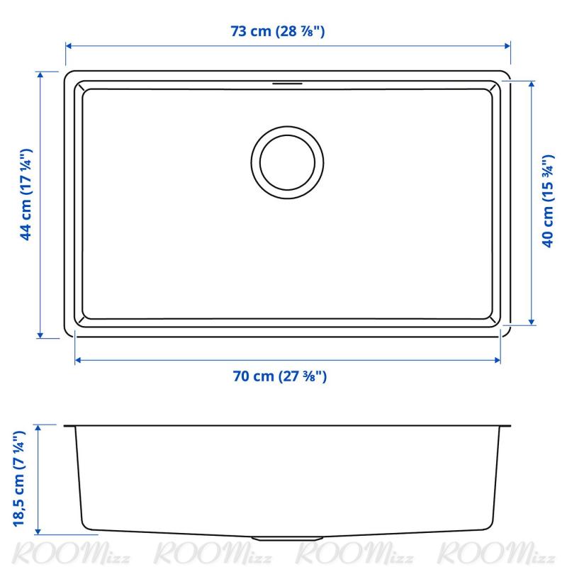 VRESJÖN ヴレショーン はめ込み式シンク 1ボウル - ステンレススチール 73x44 cm