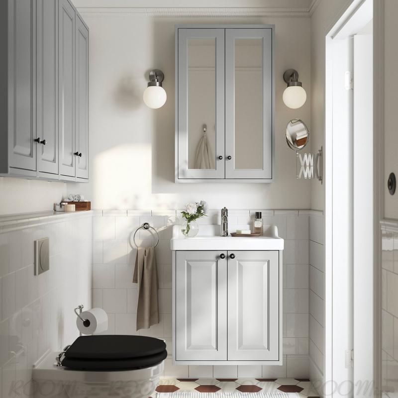 この陶磁器の洗面ボウルは、イケアの洗面台にぴったり合います。 縁がやや高くなった一体型のバックスプラッシュが水はねから壁を守り、楕円形のボウルが温かみのあるトラディショナルな雰囲気を演出します