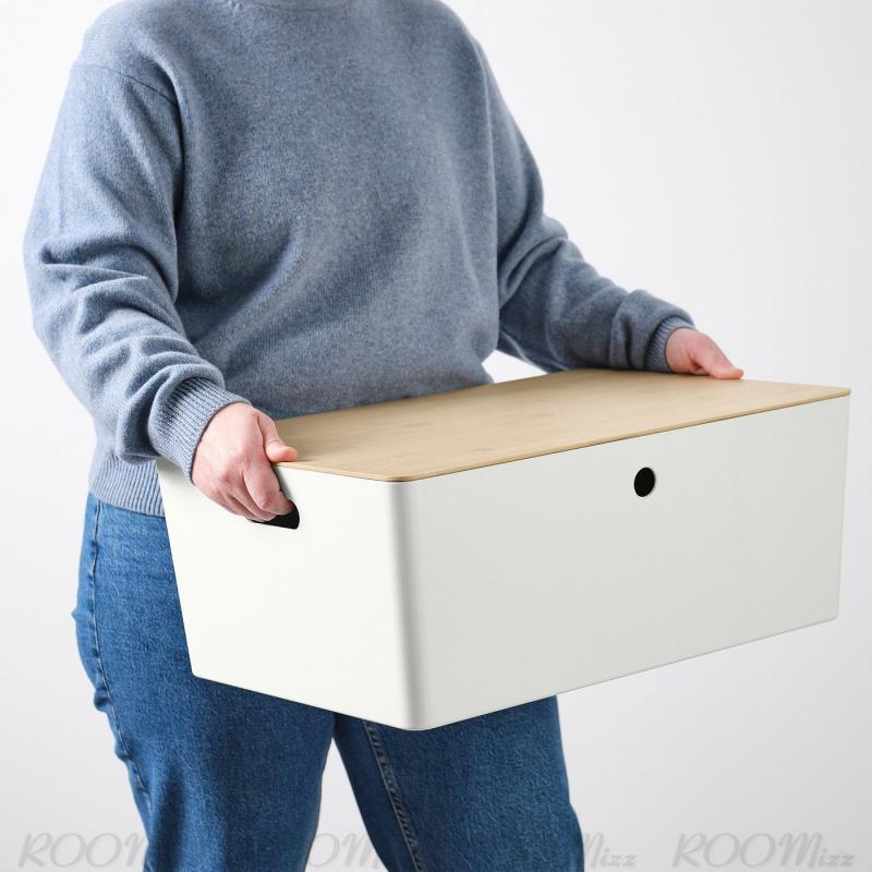 KUGGIS クッギス ふた付きボックス - ホワイト/竹 37x54x21 cm