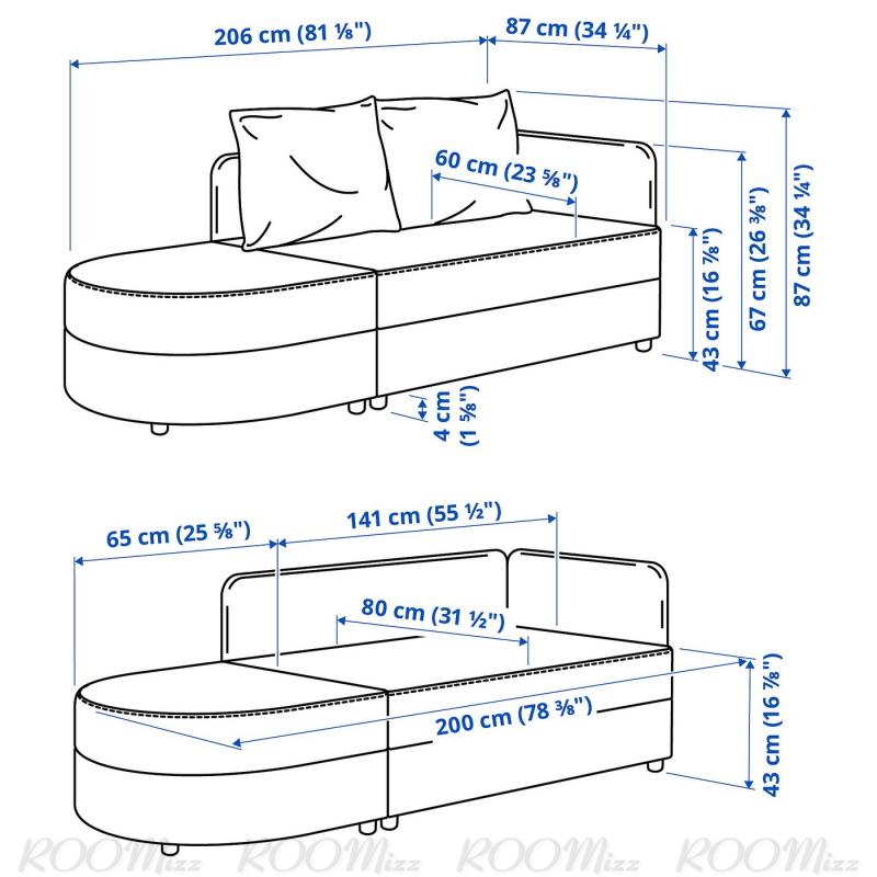 丸みを帯びた遊び心のある形で、シートセクションとプーフの中に収納スペースがある機能的なソファベッド。 固定カバーはお手入れを簡単にする処理が施されているので、安心してくつろげます