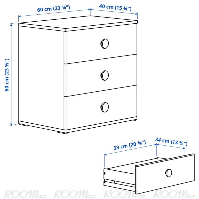 GODISHUS グーディスフース チェスト(引き出し×3) - ホワイト 60x40x60 cm