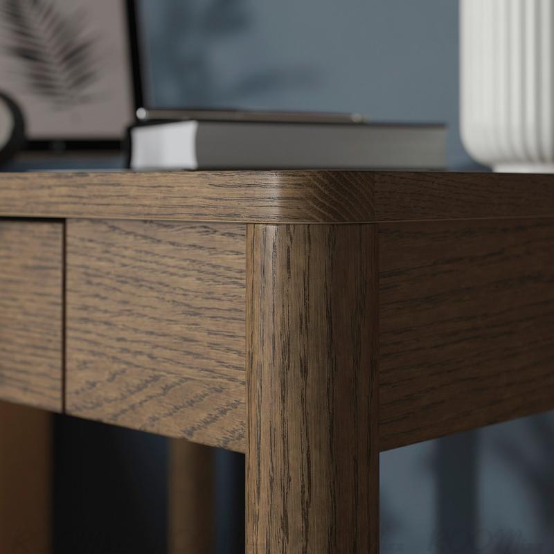 クラシックなデザインに、美しいブラッシュ仕上げの突き板を組み合わせたTONSTAD/トンスタード シリーズの家具は、独特な個性が魅力。 静かに閉まる引き出しが付いたこの小さなオークのデスクは、食事や勉強、趣味に使えます