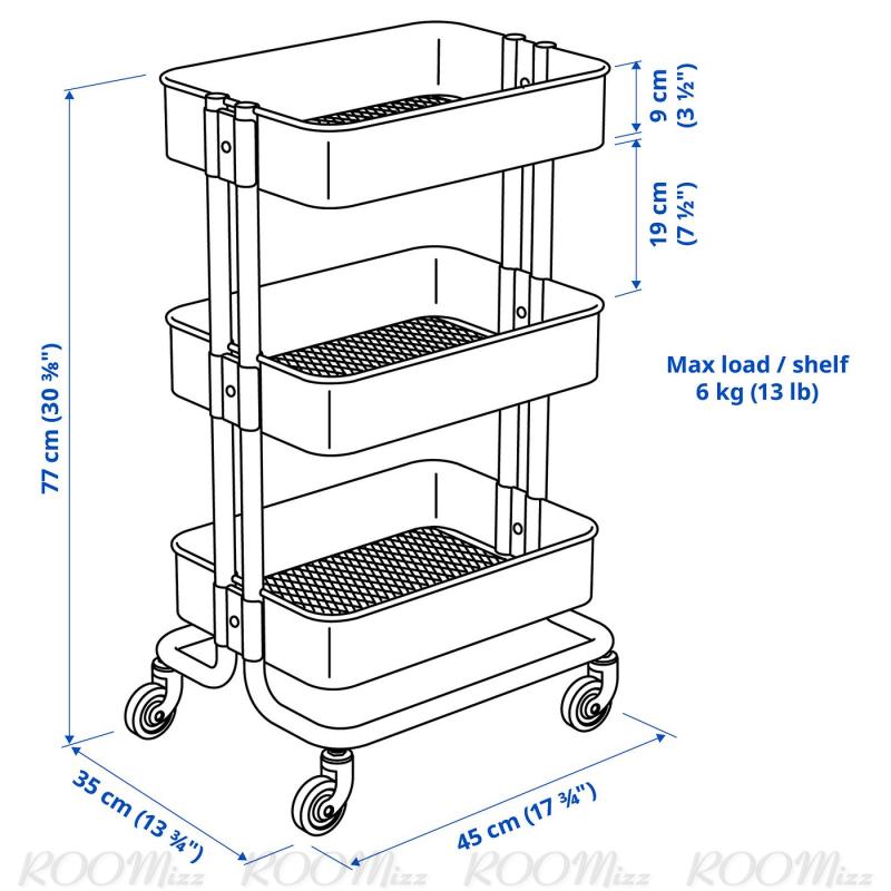 RÅSKOG ロースコグ ワゴン - グレーブルー 35x45x77 cm