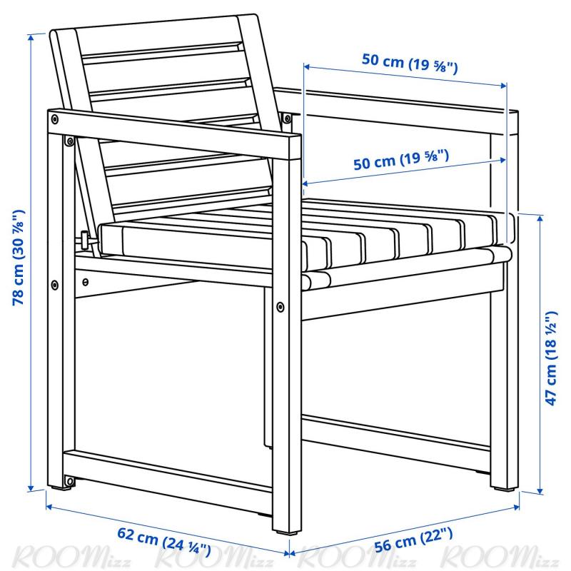 NÄMMARÖ ネッマロー テーブル+チェアアームレスト付き6 屋外用 - ライトブラウンステイン/クッダルナ ライトグレーベージュ 200x75 cm