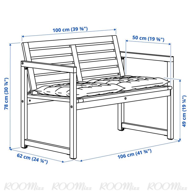 NÄMMARÖ ネッマロー ベンチ 背もたれ&クッション付き - ライトブラウンステイン/クッダルナ ライトグレーベージュ