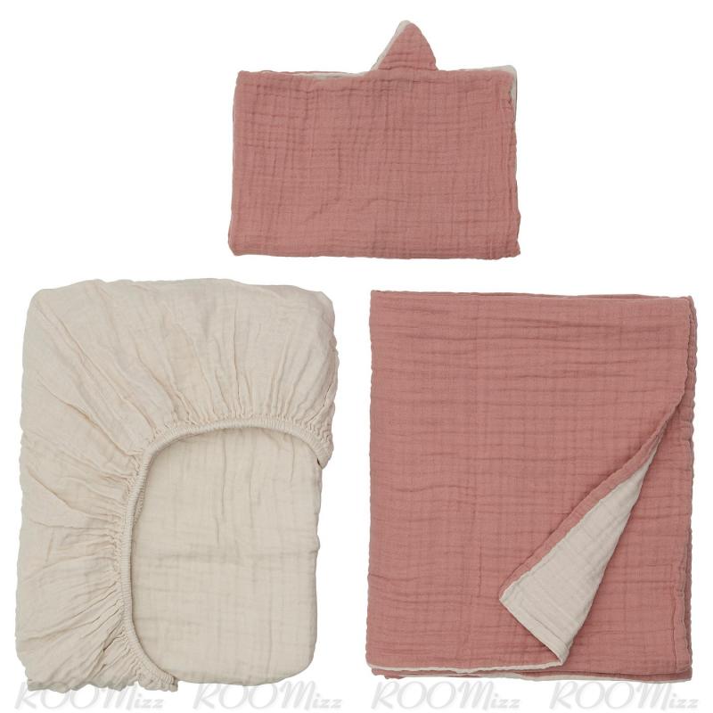 GULDVÄVARE グルドヴァヴェレ ベビーベッド用リネン3点セット - ペールピンク/ベージュ 60x120 cm