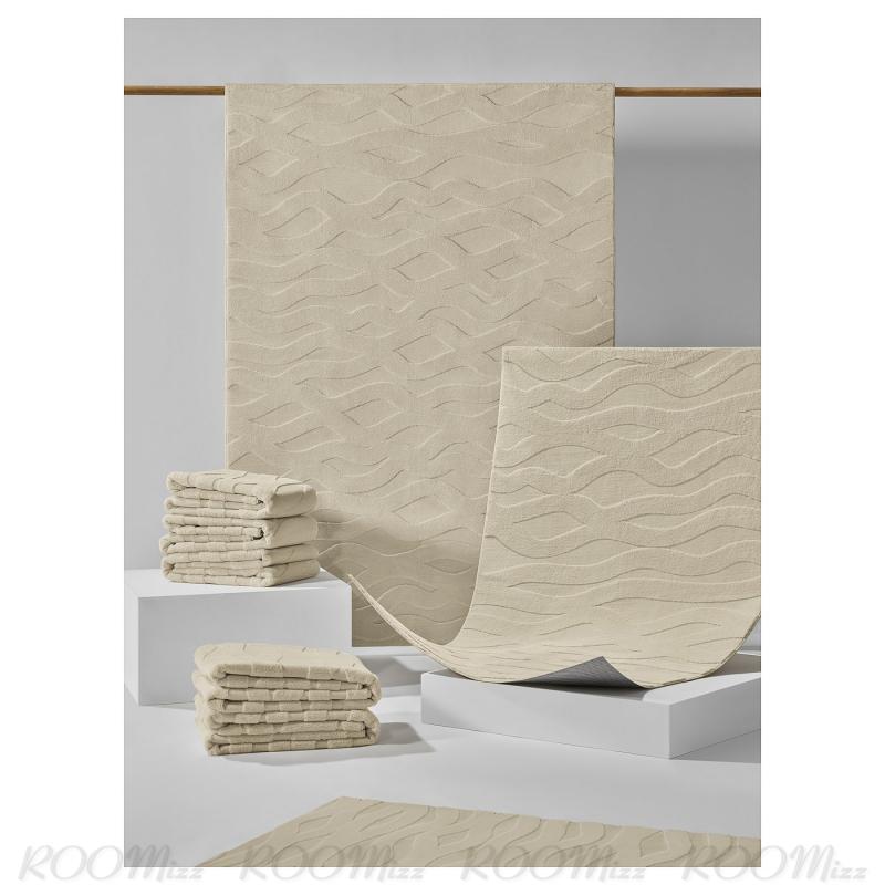 厚手のパイルが柔らかくて心地よいラグ。浮かび上がった立体的な波模様が特徴です。歩くにも、寝転ぶにも、座って遊ぶにも快適。しかも驚くような価格です