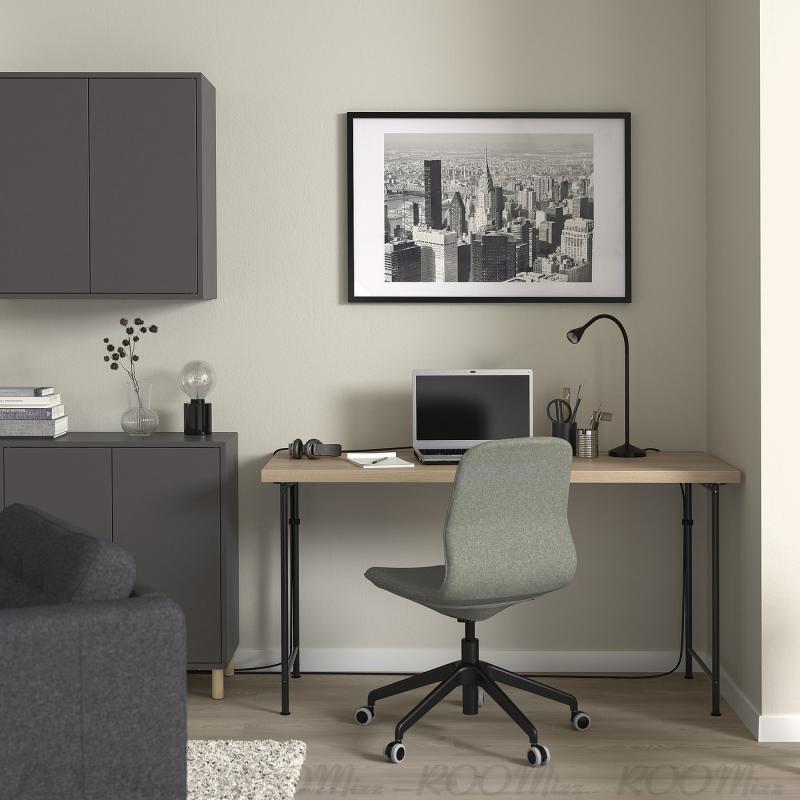 LAGKAPTEN/ラグカプテン、MÅLSKYTT/モルシット、MITTCIRKEL/ミットツィルケル、LINNMON/リンモン シリーズの奥行き60cm×長さ140cmまでの天板に組み合わせられます