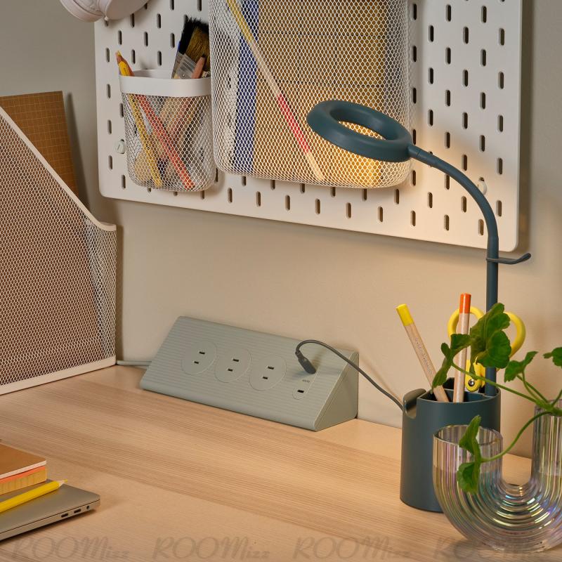 延長コードはもちろん見た目がよく、インテリアになじむ必要があります。 SKOTAT/スコータート 延長コードはミニマルなデザインで、どちら向きでも、コーナーやデスクの上にフィットしやすい形です
