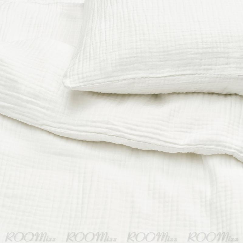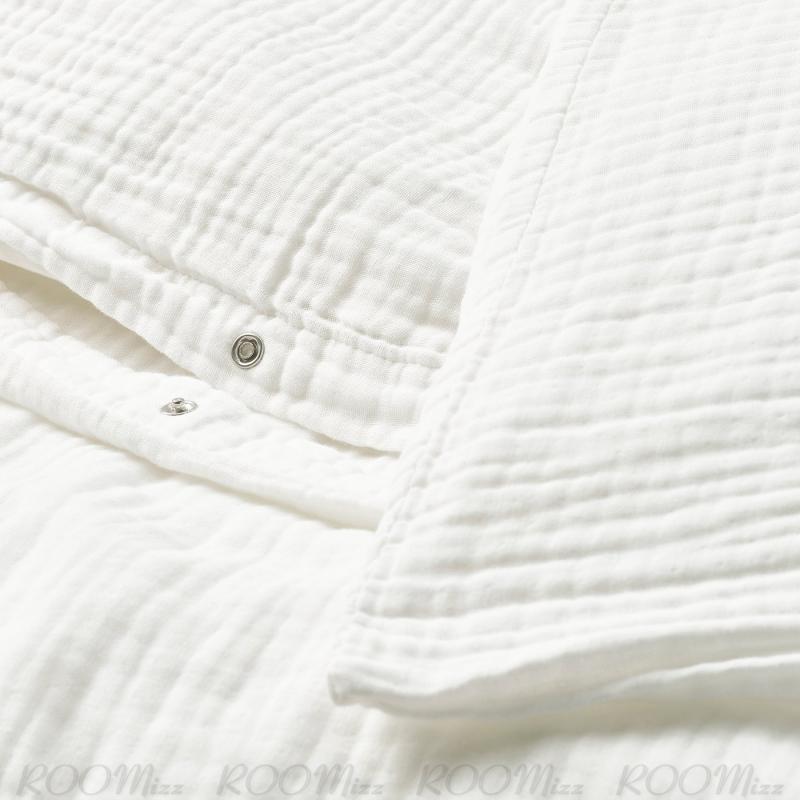 モスリンは繊細で織りが粗い生地です。 引っかかりや破れを防ぐため、この掛け布団カバーは、ファスナーや面ファスナー、またはざらざらした質感のものと一緒に洗わないでください
