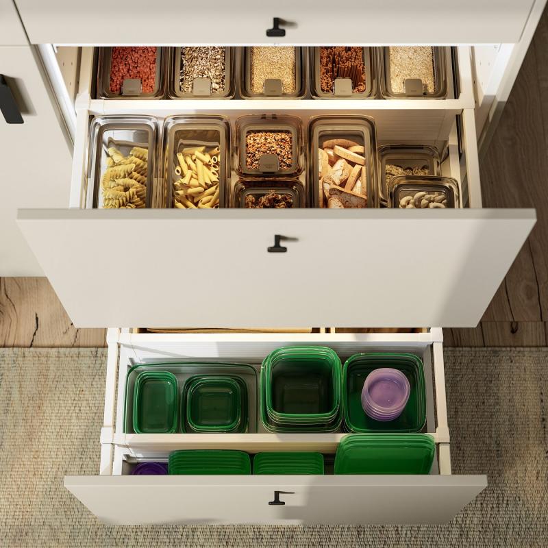 使わないときに食器棚に収納する際も、中身を入れてふたをして冷蔵庫や冷凍庫に収納する際も、重ねられるのでスペースを節約できます