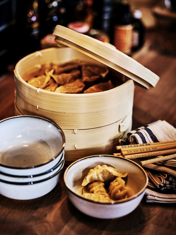 食事はヘルシーで、おいしく、楽しく!この蒸し器は、野菜や魚、チキン、ダンプリング(餃子)の調理に最適。2段になっているので、別々の料理を分けて入れられます。蒸し上がったら、そのまま食卓に出してもステキです