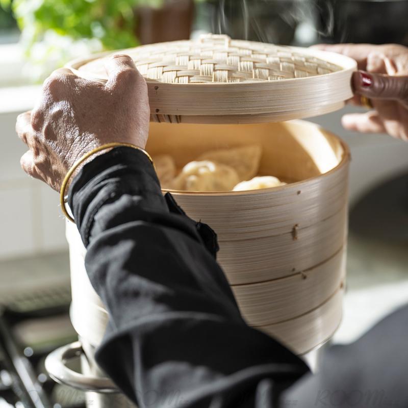 竹製蒸し器は、水を入れた幅のあるフライパンや中華鍋と使用してください。蒸し器の底面に水がつかないようにしてください