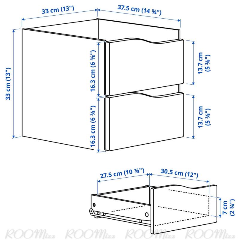 KALLAX カラックス シェルフユニット - 引き出し4段付き ホワイト/ライトグレーブルー 波形 77x77 cm