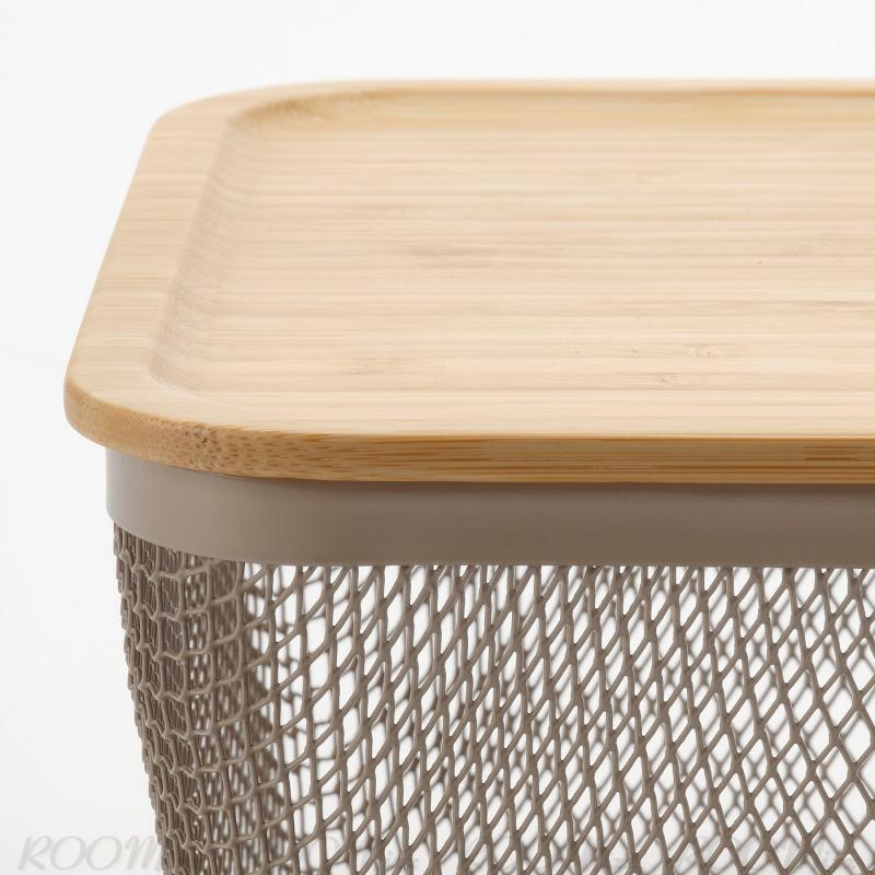 IKEA 365+ 食品保存バスケット ふた付き - 長方形 メタル/ライトグレーブラウン 竹 32x21x13 cm