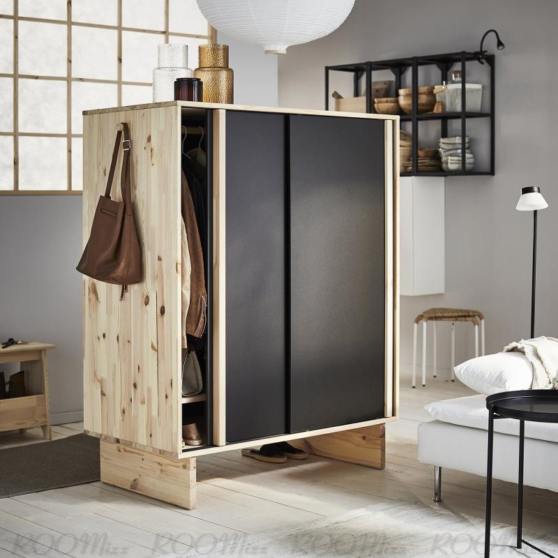 GLAMBERGET/グラムベルゲット ワードローブは両面から開けられるので、部屋の中央に設置してルームディバイダーとして使うのに最適です。 可動棚2枚付き。ニーズに合わせてスペースを簡単にカスタマイズできます