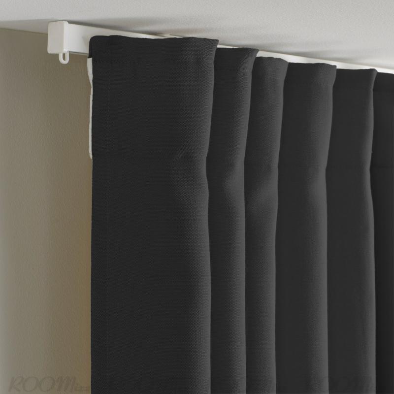 ヘディングテープ付きカーテン。タブまたはロッドポケットを使って、カーテンロッドに直接つり下げられます。 または、ランナー&フックを使ってトラックレールにカーテンを掛けることもできます
