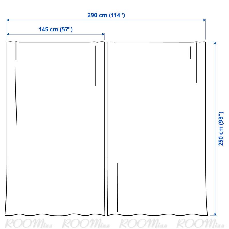 丈250cm。カーテンを窓の上につるして、気取らない見た目をつくりたい場合に最適です