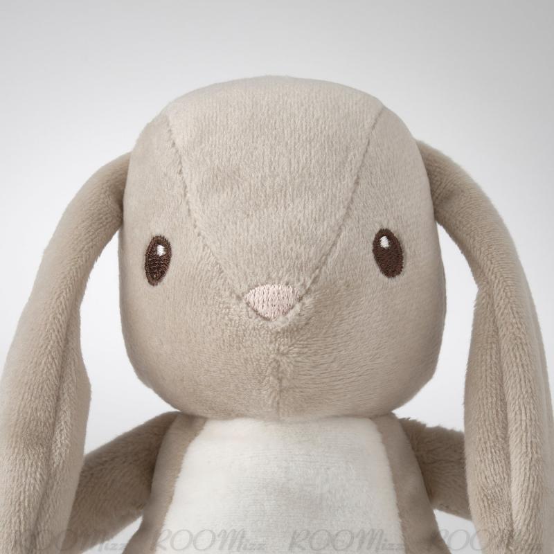 かわいくて柔らかくて、抱きしめるのにちょうどいい大きさ。 ニュートラルカラーの小さなウサギは、お子さまの相棒にぴったりです。トレードマークは長い耳。 赤ちゃんが安全につかんだり持ったりしやすいようにしています