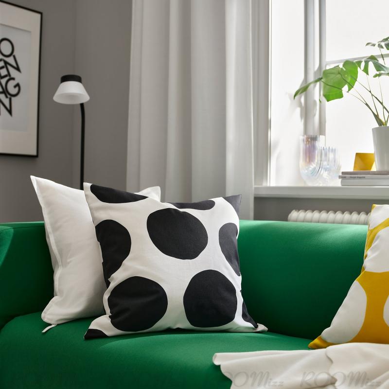 BLÅMUNKAR ブロームンカル クッションカバー - ホワイト/ブラック/水玉模様 50x50 cm
