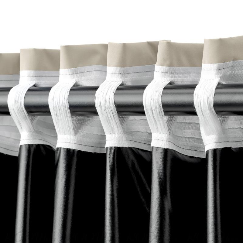 ヘディングテープ付きカーテン。タブまたはロッドポケットを使って、カーテンロッドに直接つり下げられます。 または、ランナー&フックを使ってトラックレールにカーテンを掛けることもできます