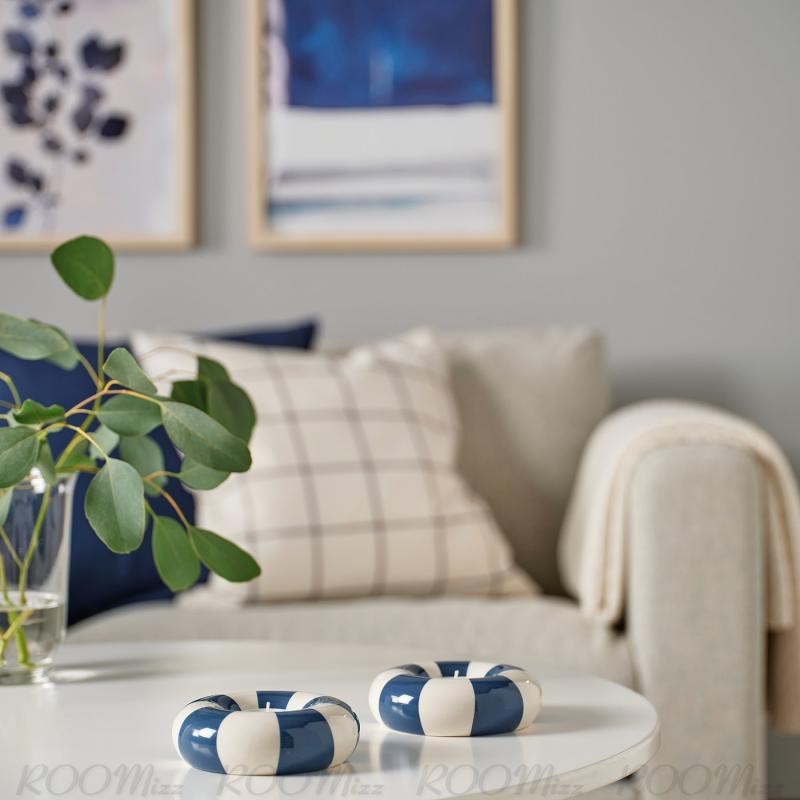 TRÄDSTAM トレードスタム ティーライトホルダー - ダークブルー/ホワイト 4 cm