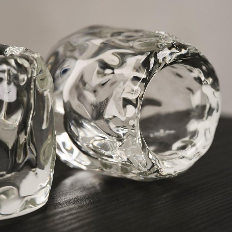 スウェーデンのガラスアートへの敬意を表したアイテム。 厚みのあるクリアガラス製の装飾的なティーライトホルダーは、アイスキューブような見た目ですが、キャンドルに火を灯すと、炎の温かな心地よい雰囲気が部屋に広がります