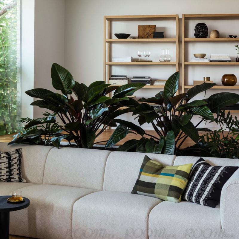 テクスチャーのある美しい素材とバランスのとれた比率の幾何学的な形が融合したこのソファは、どの部屋に置いてもナチュラルなセンターピースになります