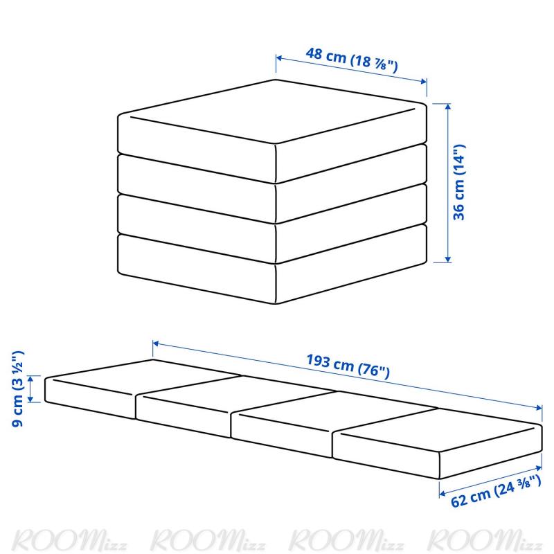 折りたたんだプーフ/マットレスは、SLÄKT/スレクト ベッドの下にすっぽり収まります