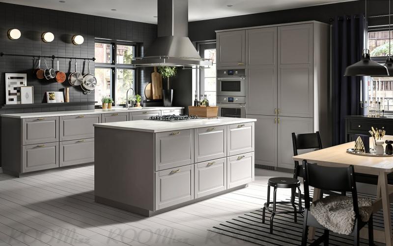 METOD/メトード キッチンシステムなら、理想のキッチンづくりに無限の可能性があります。エッジに面取り加工を施したソフトグレーのBODBYN/ボードビーン 扉&引き出し前部を組み合わせれば、トラディショナルな印象でぬくもりのある居心地のいい雰囲気を演出できます