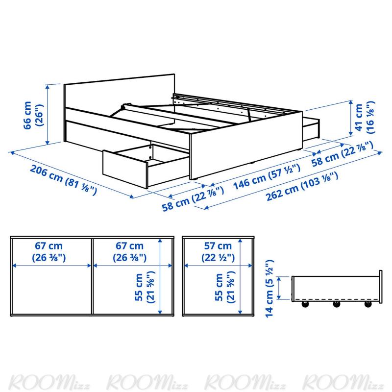 VIHALS ヴィーハルス ベッドフレーム 収納ボックス4個付き - ホワイト/ルーローイ 140x200 cm
