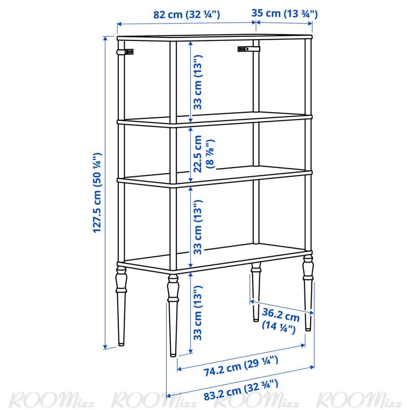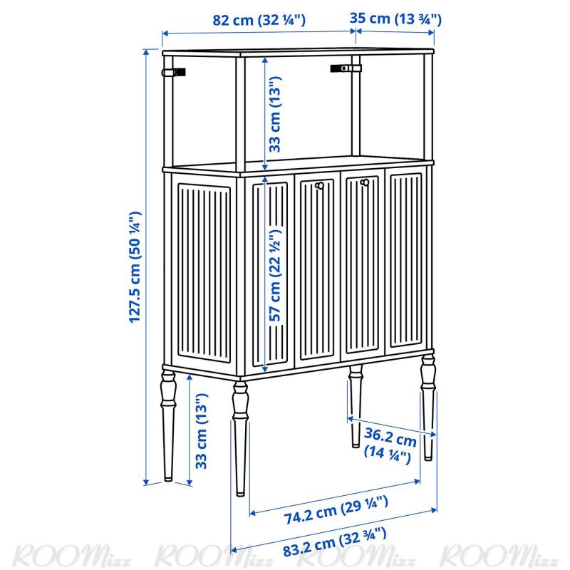 柔らかな形のトラディショナルスタイル。 金属製のSÅGMÄSTARE/ソーグメスタレ キャビネットとシェルフユニットは、旋盤加工の脚と丸みのある角が魅力的な見た目をつくり出しています。 このコンビネーションは、オープン収納と目隠し収納の両方が楽しめます