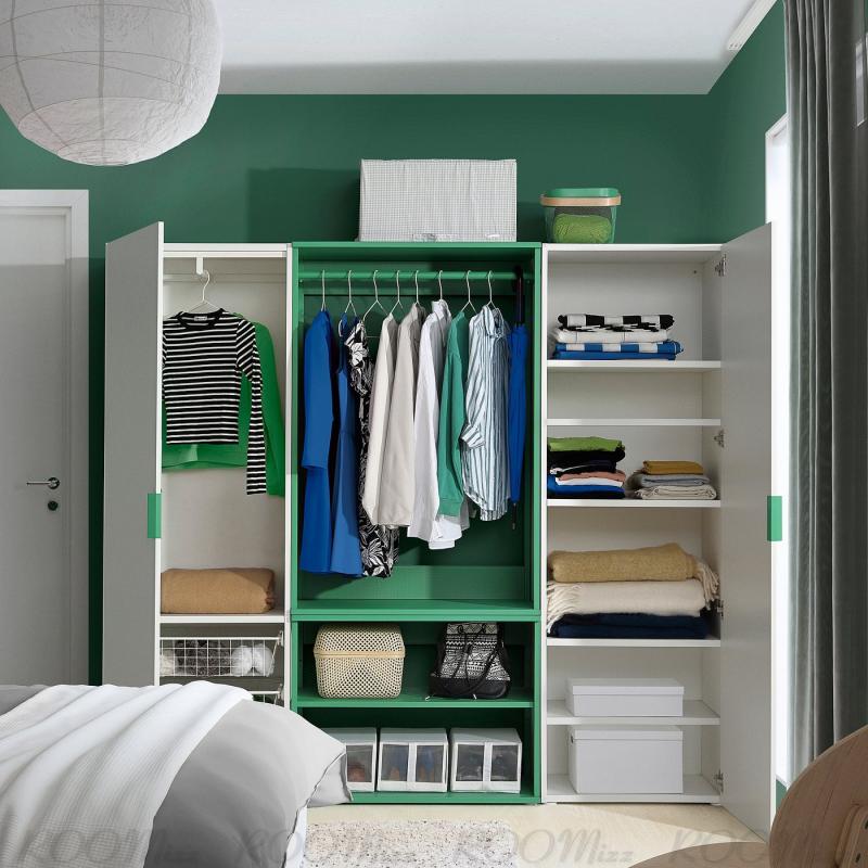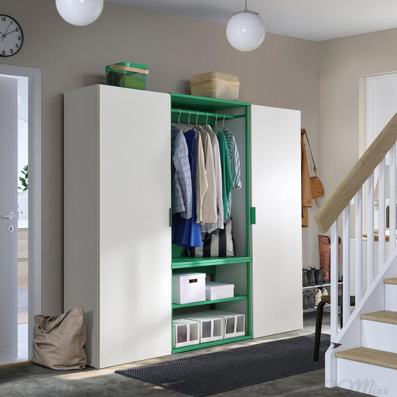 PLATSA プラッツァ ワードローブ 扉2枚付 - ホワイト フォッネス/グリーン 200x42x181 cm