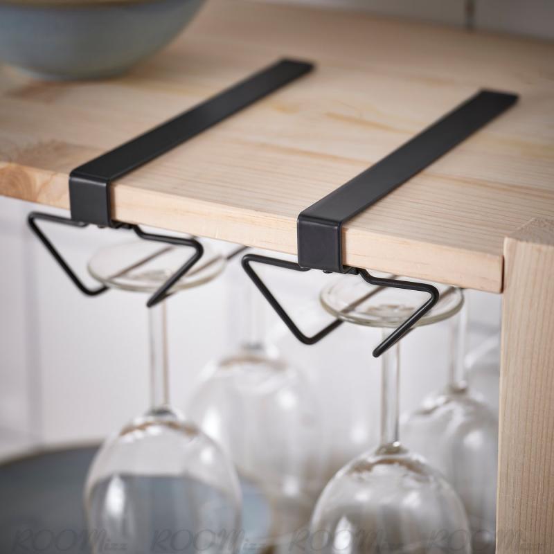 ウォールキャビネットやシェルフの下側に取り付けられ、ワイングラス6個を取り出しやすく収納できます