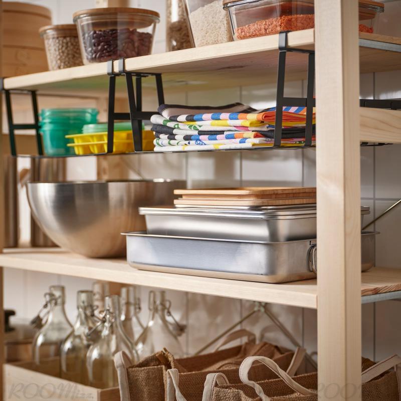 パントリー(食品用収納)やキッチンキャビネットの中に、容器やマグ、キッチンクロスなどを取り出しやすく整理するのに役立ちます