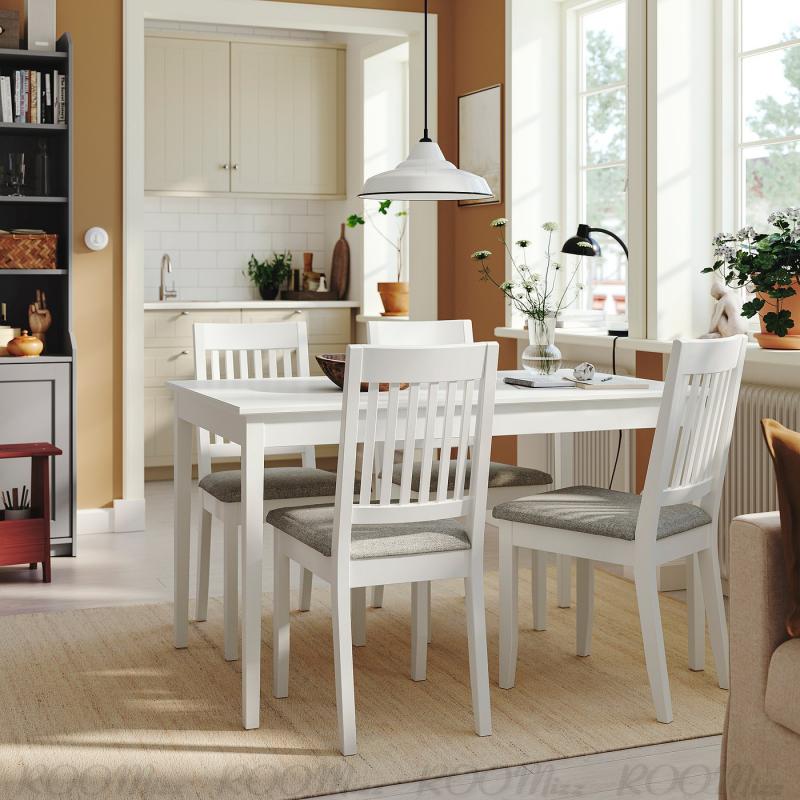 NÄSINGE ネースィンゲ / NÄSINGE ネースィンゲ テーブル&チェア4脚 - ホワイト/ホワイト ティッブレビ ベージュグレー 130x80 cm