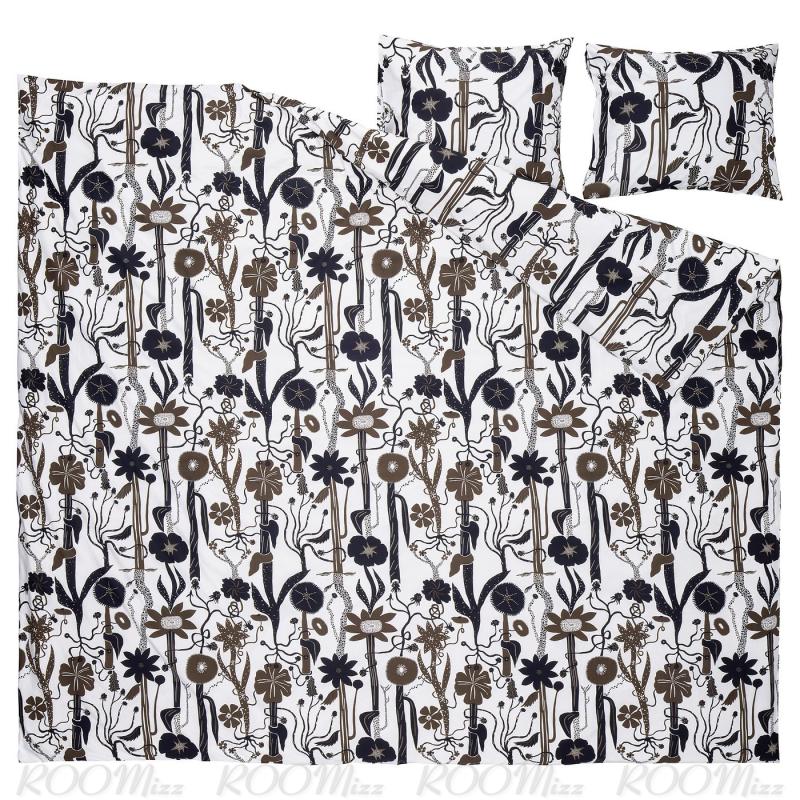 LUNDSKAFTING/ルンドスカフティング 掛け布団カバーセットは、曲がりくねったボタニカル模様が野生化したエキゾチックな花壇を思わせます。 耐久性に優れたパーケール織りの綿/リヨセル混紡の布地は、通気性があり、爽やかな寝心地です