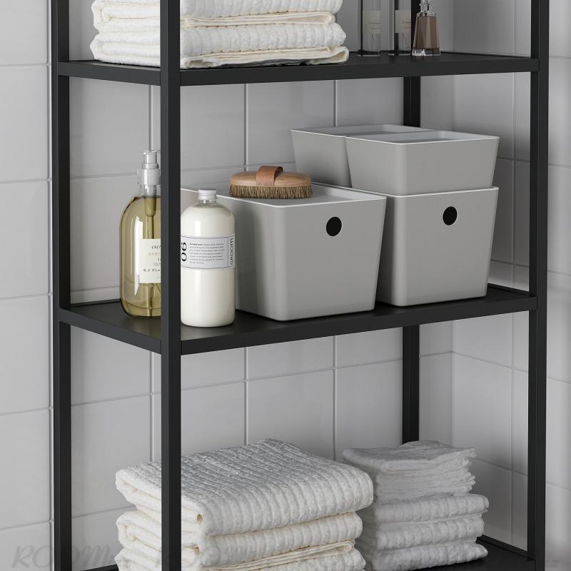 奥行き13cm以上の浅い棚や、ENHET/エーンヘート シリーズの奥行き15cmの棚に収まります