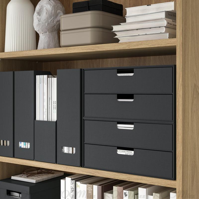 FJÄDERHARV/フィェデルハルヴ シリーズのアイテムは手軽に組み合わせられるうえ、高さをそろえているので本棚に並べたときにすっきりとした印象です