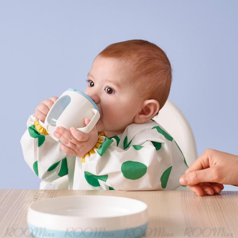 ベビーマグには飲み口と両側に大きな持ち手が付いているので、赤ちゃんの小さな手でも握りやすく、簡単に飲めます