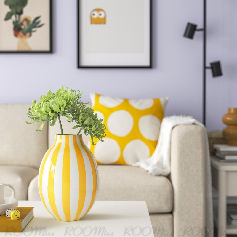 BLODBJÖRK ブロドビョルク 花瓶 - ストライプ ホワイト/イエロー 25 cm