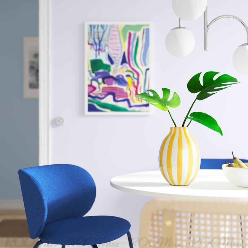 イエローのストライプはハンドペイントなので、それぞれ仕上がりが微妙に異なります。ぬくもりと活気が感じられる花瓶です