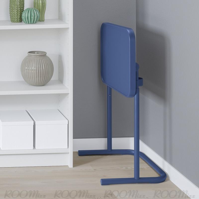 ブルーの安定感のあるラップトップスタンドは、勉強や仕事をしたり、楽譜を見ながら楽器を演奏したりするのに便利です。 簡単に高さを調節したり、天板を傾けたり、家の中を移動したりできるうえ、折りたたんで収納することもできます