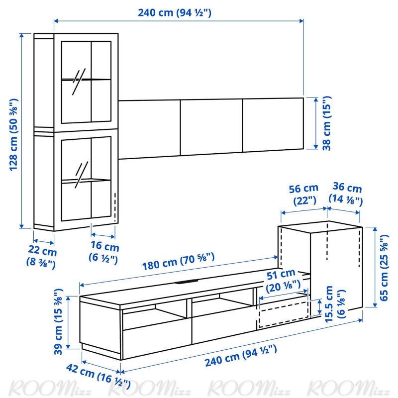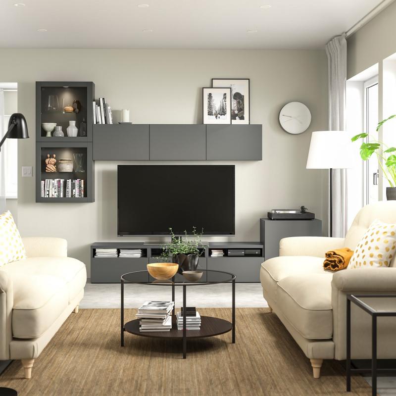 BESTÅ ベストー テレビボード/ガラス扉 - ダークグレー ラップヴィーケン/シンドヴィーク ダークグレー 300x42x211 cm