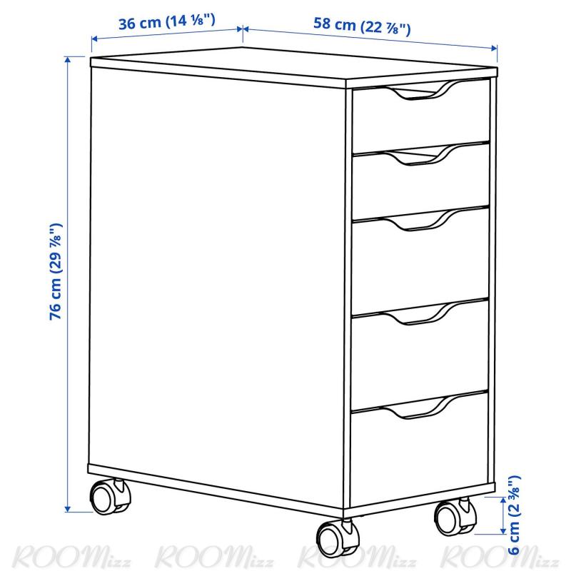 ALEX アレクス 引き出しユニット キャスター付き - ブラックブルー 36x76 cm