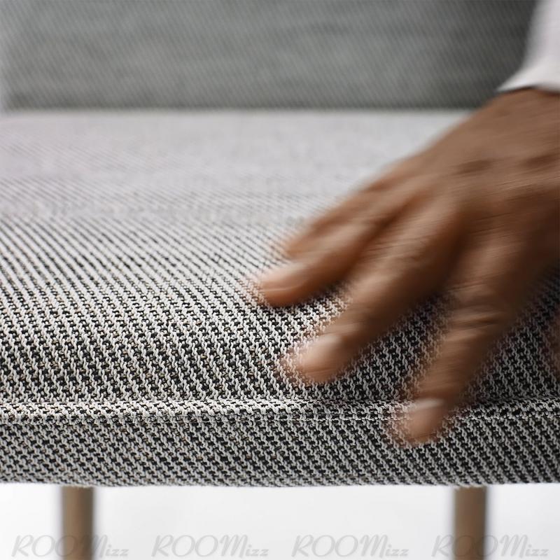 耐久性がありお手入れの簡単なヴィーアルプ 布地は、綿とリサイクルポリエステルの混紡素材で毛羽立ちや毛玉ができにくいうえ、メランジ調なので汚れも目立ちません