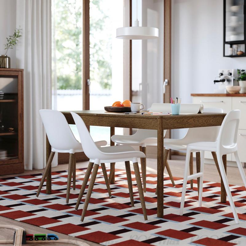 TONSTAD トンスタード / GRÖNSTA グローンスタ テーブル&チェア4脚 - ブラウン オーク材突き板/ホワイト 140/196x85 cm