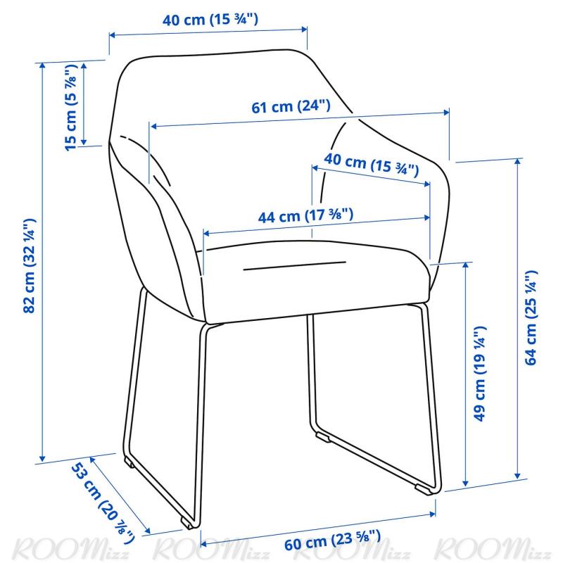 機能的にベストな長さのアームレスト。後ろにもたれて座るときは腕をサポートし、食事をするためにチェアをテーブルに近づけるときは邪魔になりません