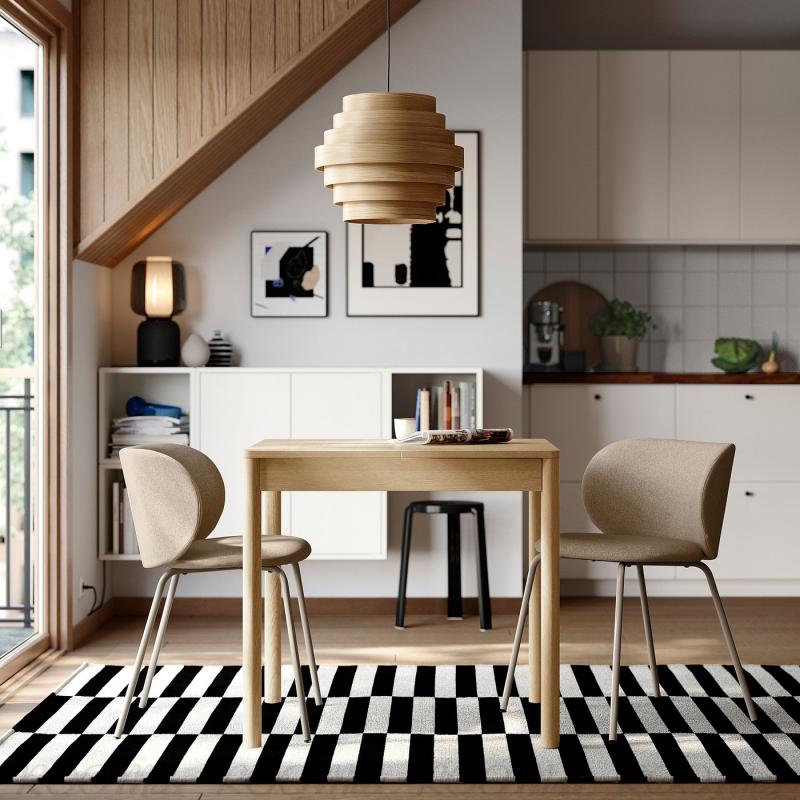 ブラッシュ仕上げのマットなオーク材突き板の表面と滑らかな丸みを帯びたコーナーが特徴の2~4人用のテーブル。日々の暮らしの中でお気に入りの場所になるようにつくられています