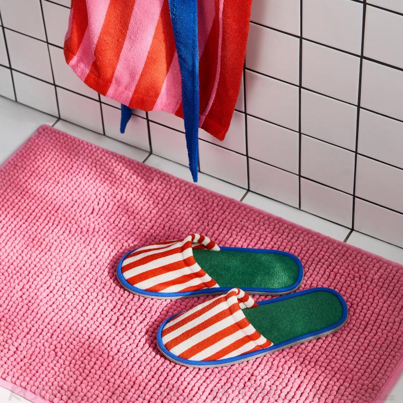 遊び心のある鮮やかなストライプ模様のスリッパは、リラックスするひとときのためにつくられています。 脱ぎ履きがスムーズなデザインで、底は滑り止め付き。快適な足元を演出し、ゆっくり過ごす朝をより一層心地よくします